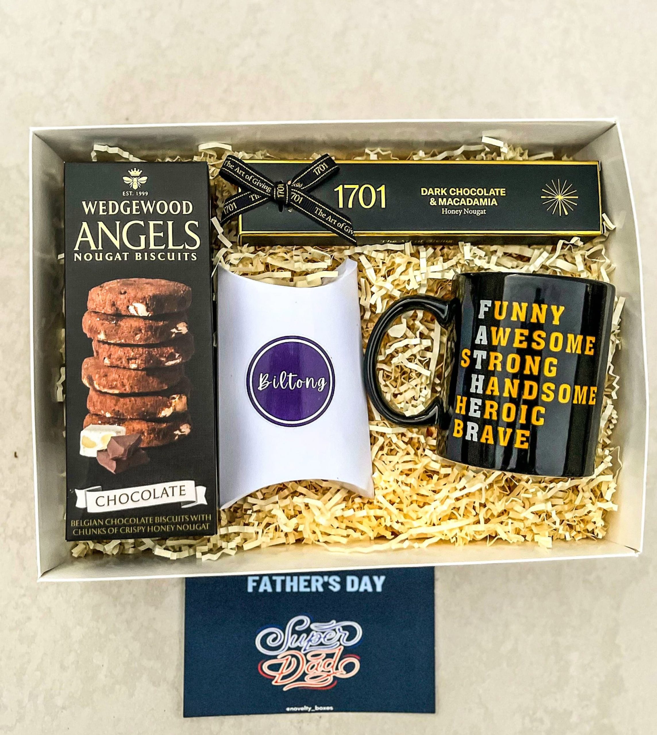 gourmet biscuits, gourmet nougat, personalised father’s day mug, biltong
