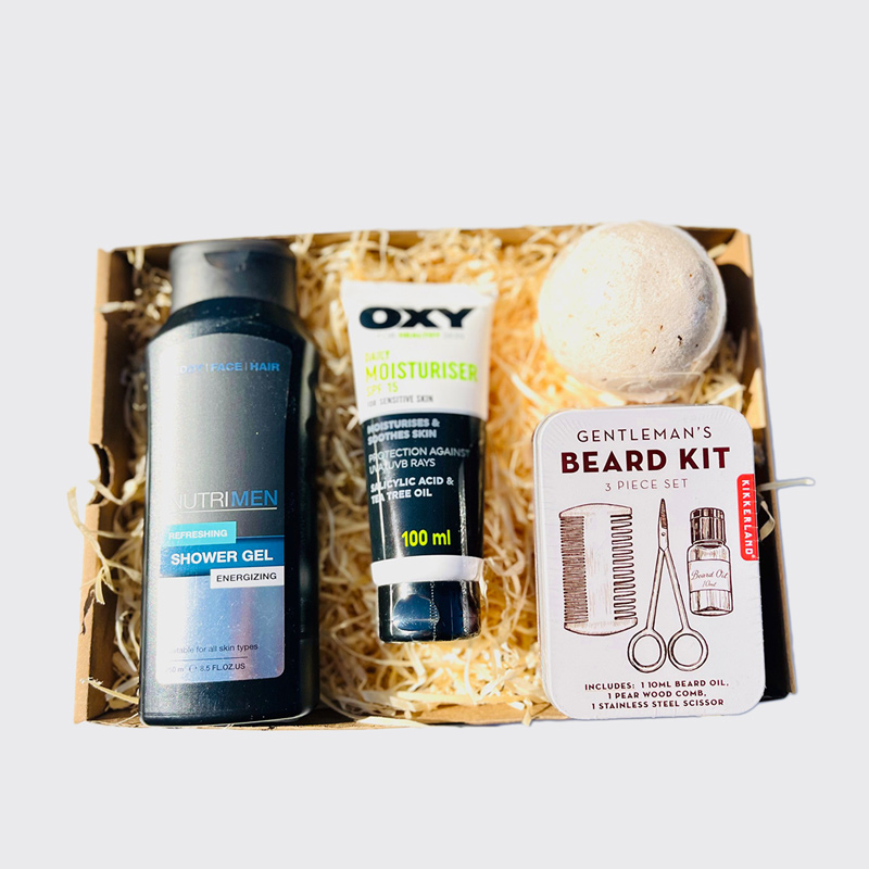 Shower gel, Body moisturiser, Bath bomb, Beard Kit